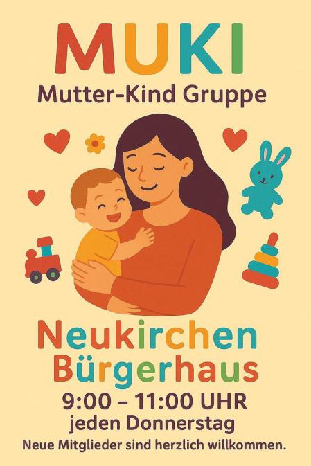 Die Mutter-Kind-Gruppe trifft sich immer Donnerstags von 9 bis 11 Uhr, im Mutter-Kind-Raum des Bürgerhauses.