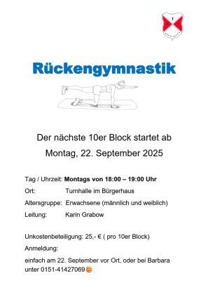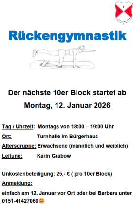 Kursgebühr: 25,- EUR je Zehnerkarte